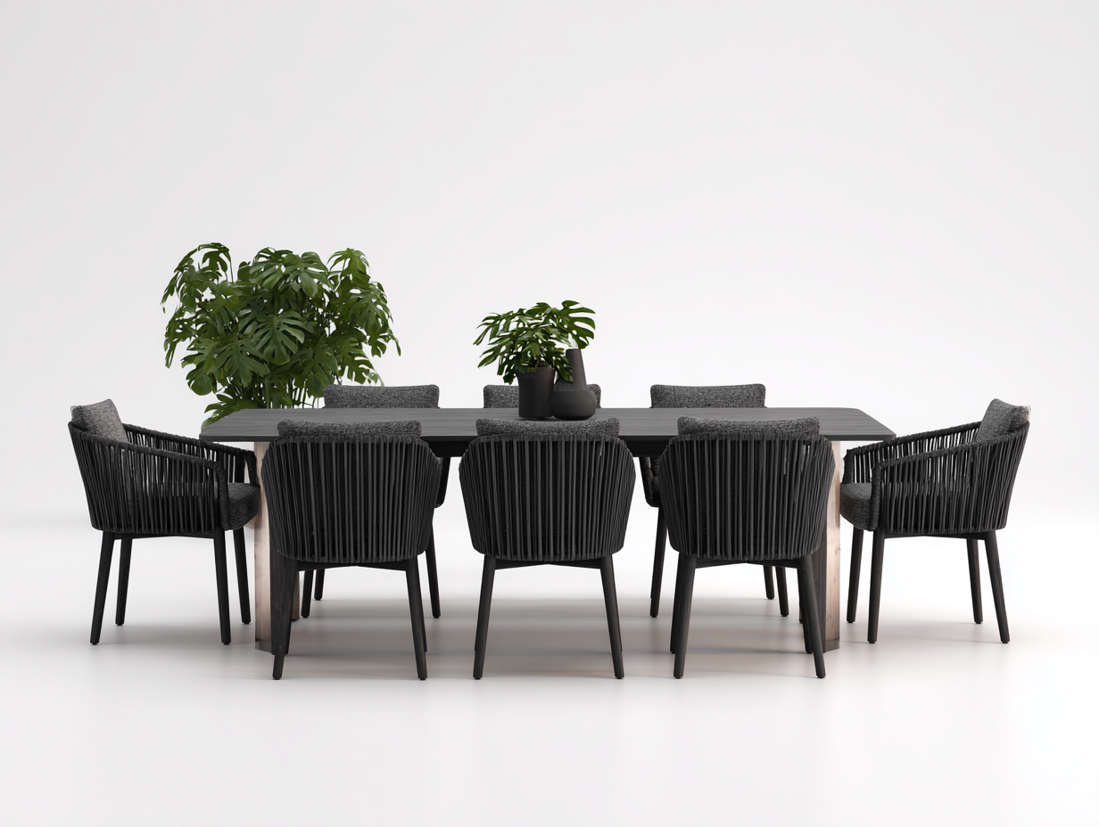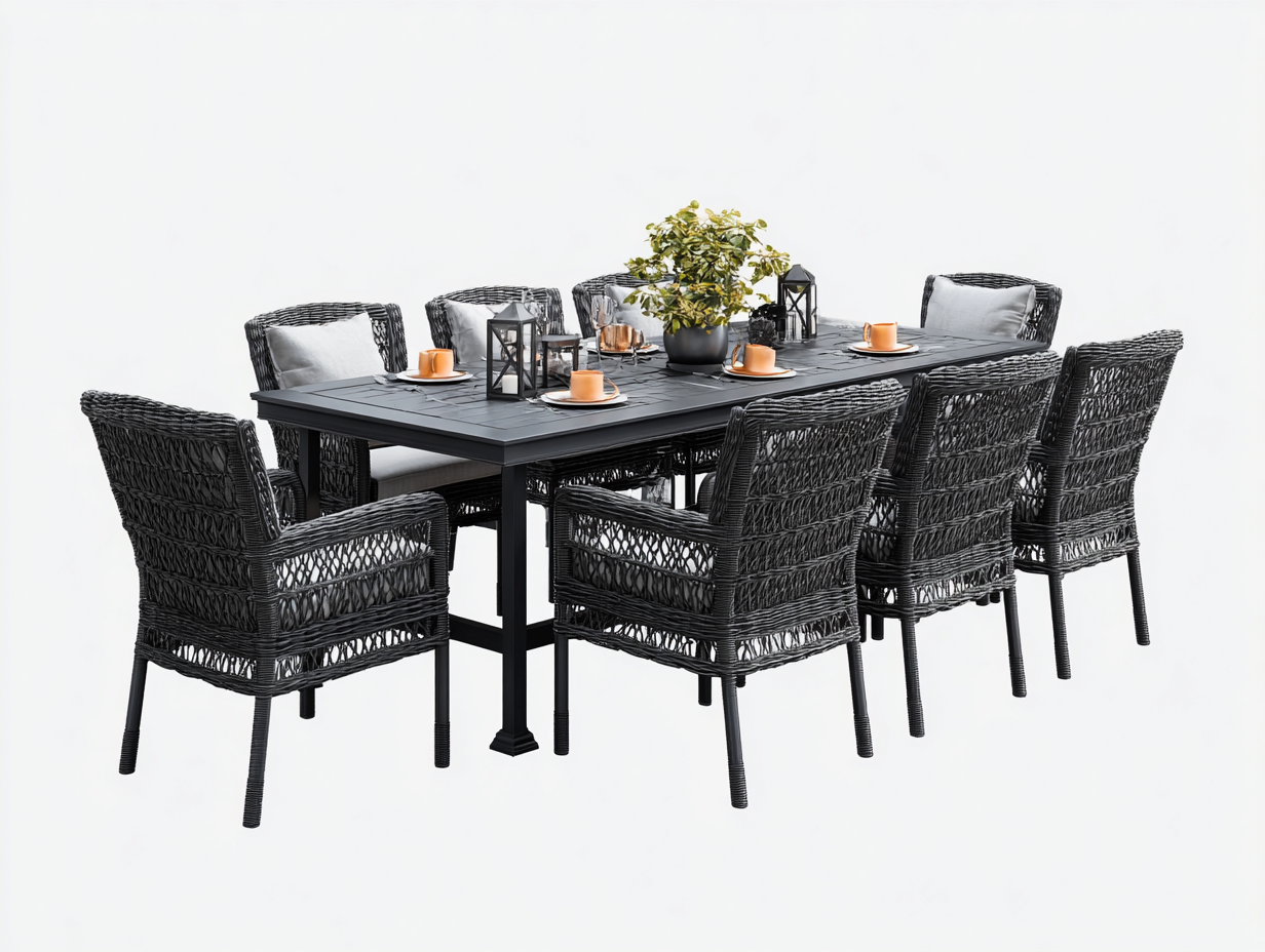 Garten Essgarnituren- Aluminium-Polyrattan- 220 x 100 x 75 cm- Schwarz-Grau- Modern