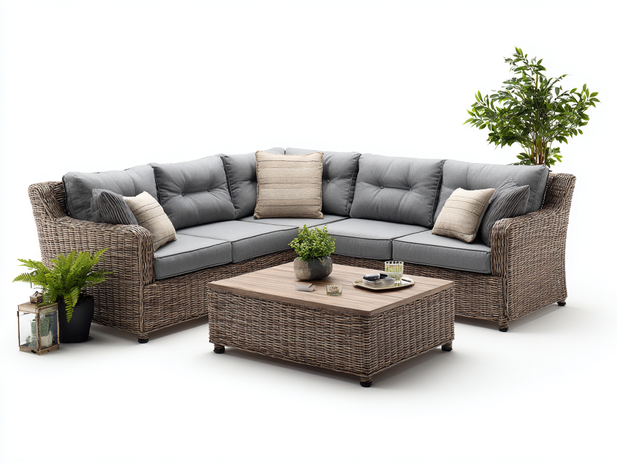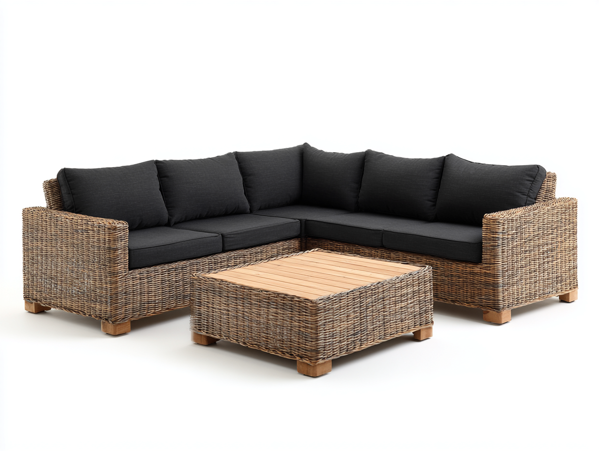 Gartensofa - Polyrattan-Holz-Stoff - 240 x 240 x 86 cm - Natur-Anthrazit - Modern