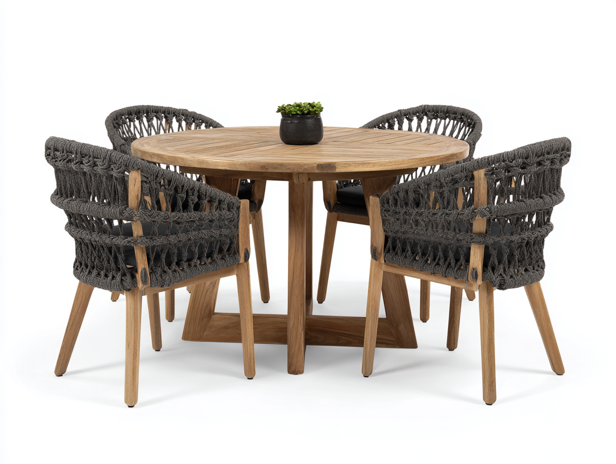 Garten Essgarnituren- Akazienholz-Polyesterseil- 120 x 120 x 75 cm- Natur-Grau- Modern