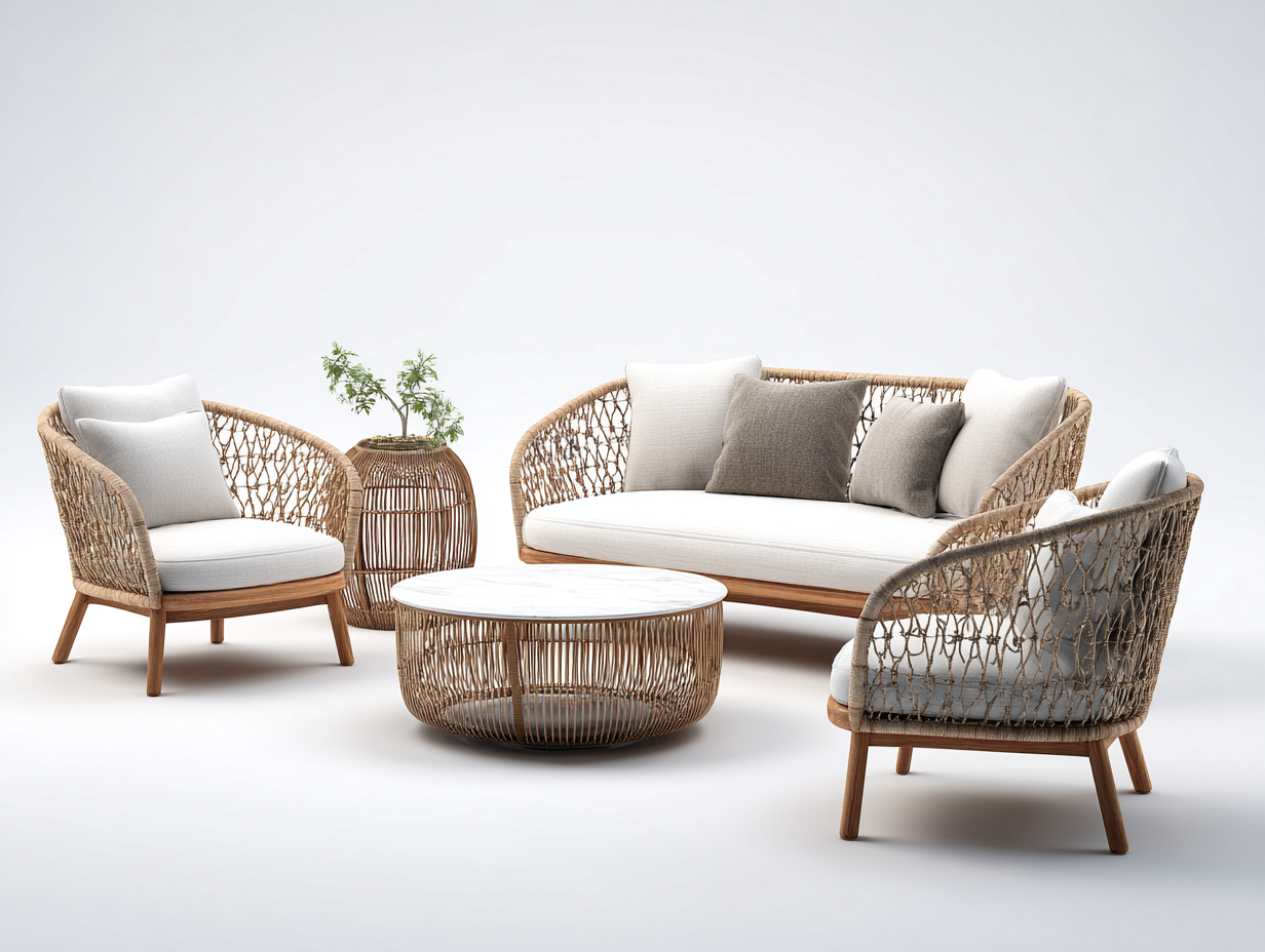 Garten Essgarnituren- Akazienholz-Polyesterseil- 150 x 150 x 75 cm- Natur-Beige- Modern