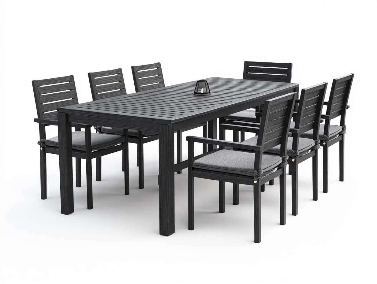Garten Essgarnituren- Aluminium-Textilene- 210 x 100 x 75 cm- Schwarz-Grau- Modern